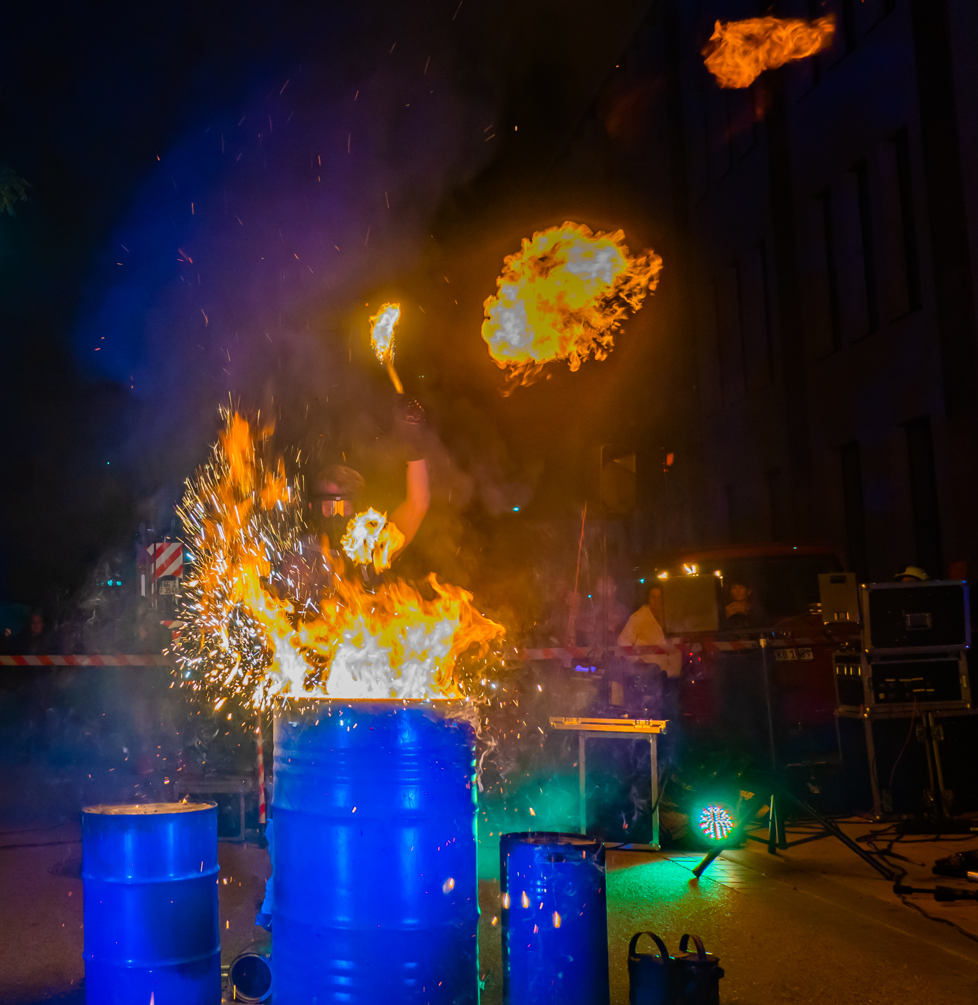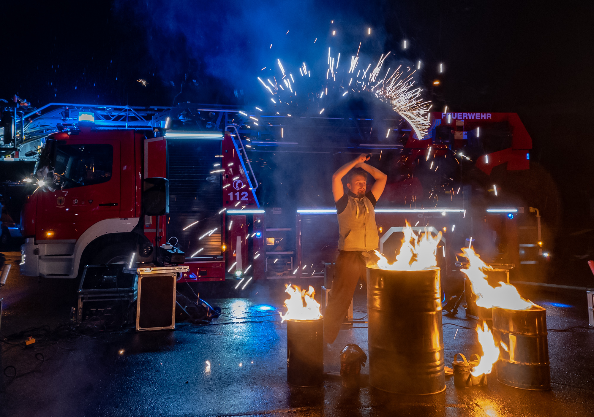 Die Verbindung aus einer mitreißenden Feuershow und modernster Veranstaltungstechnik garantiert ein unvergessliches Erlebnis. Packende Lichtstimmungen, beeindruckende Soundeffekte und ein Gesamterlebnis, das Ihr Publikum in Staunen versetzen wird.